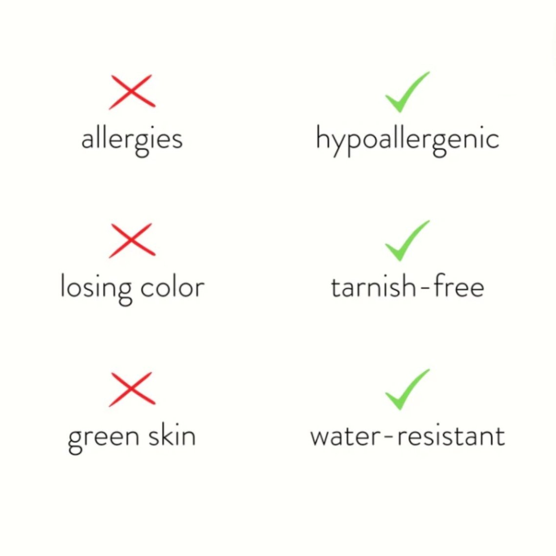 You will never have to worry about green fingers, fading or tarnishing ever again.